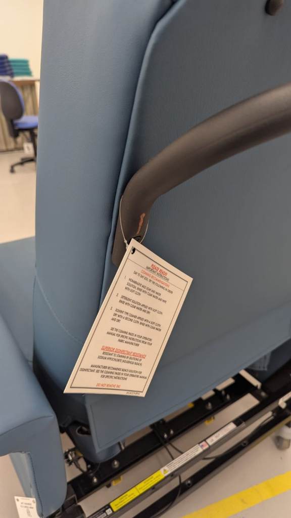This recliner was bought for a project but was never used, so just unpacked and sat in storage. It still has all the original labels on as you can see in the pictures.