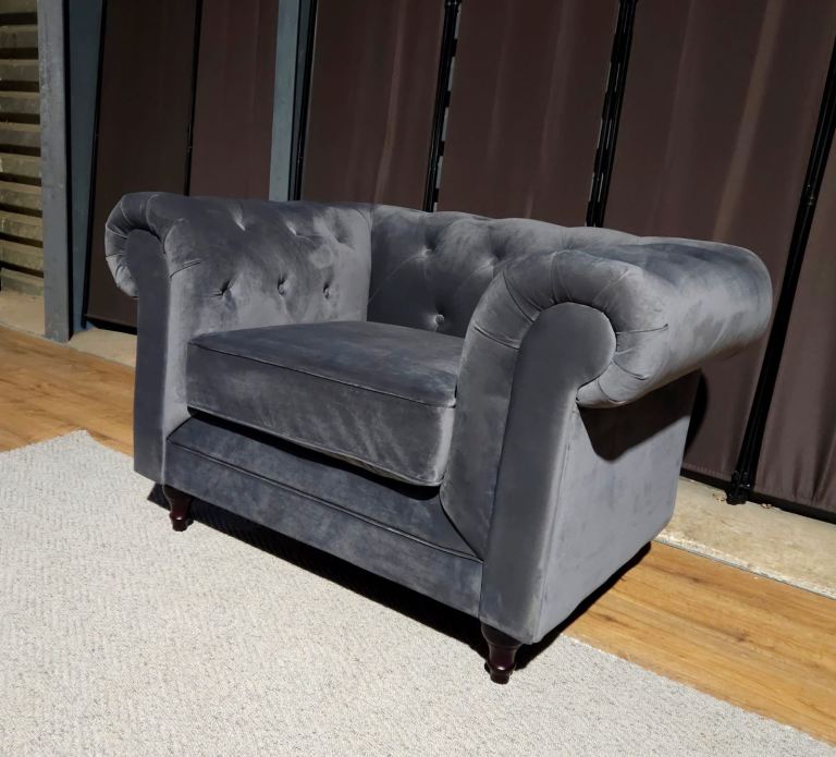 Chesterfield Velvet Armchair - Charcoal.