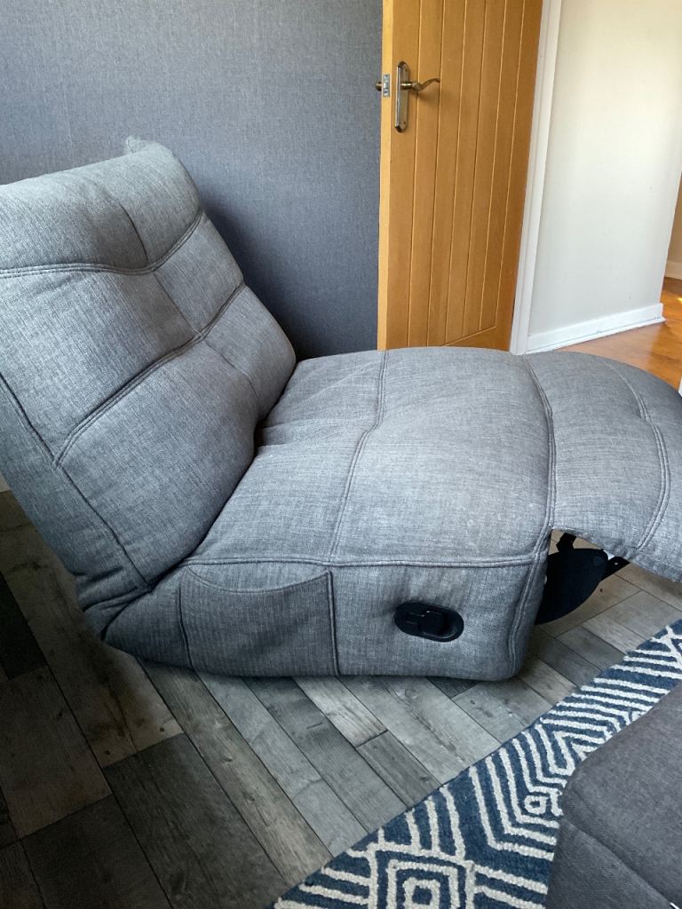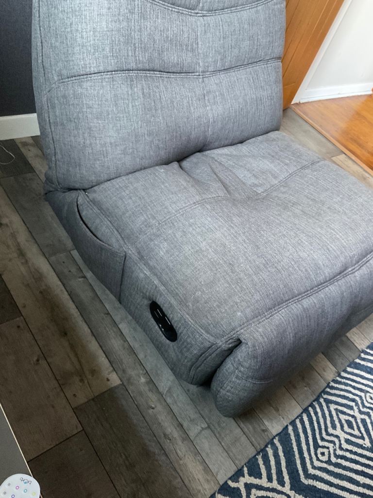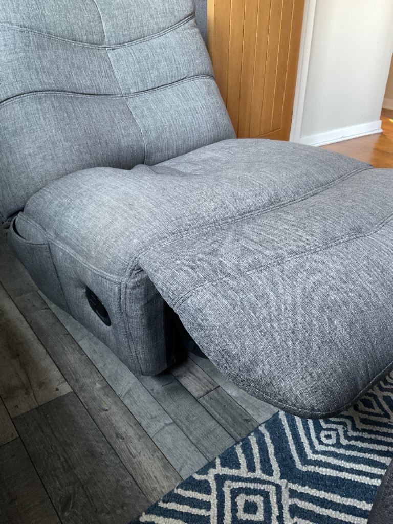 DFS ROCKER, RECLINER CHAIR. THIS CHAIR ROTATES, RECLINES AND ROCKS. GREY FABRIC MATERIAL. GOOD CONDITION. CHAIR IS ABOUT 16 MONTHS OLD.£180 ono