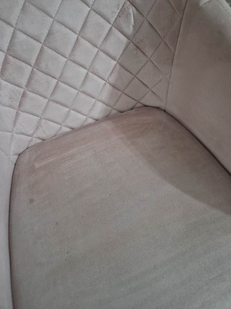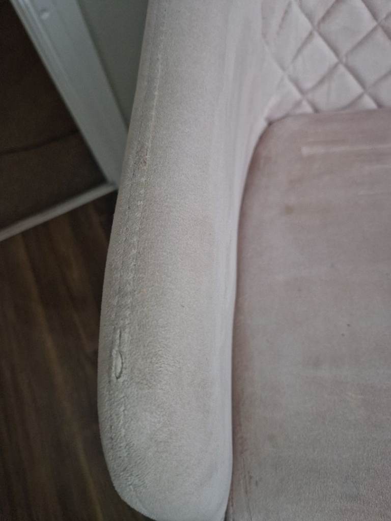 Dusky pink Chair, does have a small tear in the arm and does have a few small marks on the seat, probably will come off. Only selling due to changing decor. Collection only from kingswood