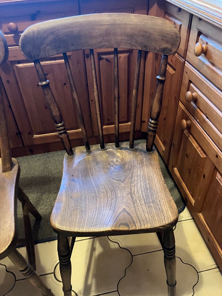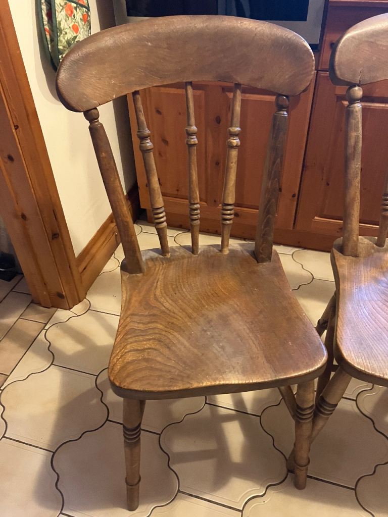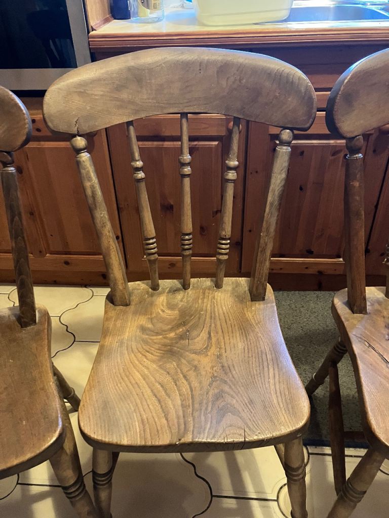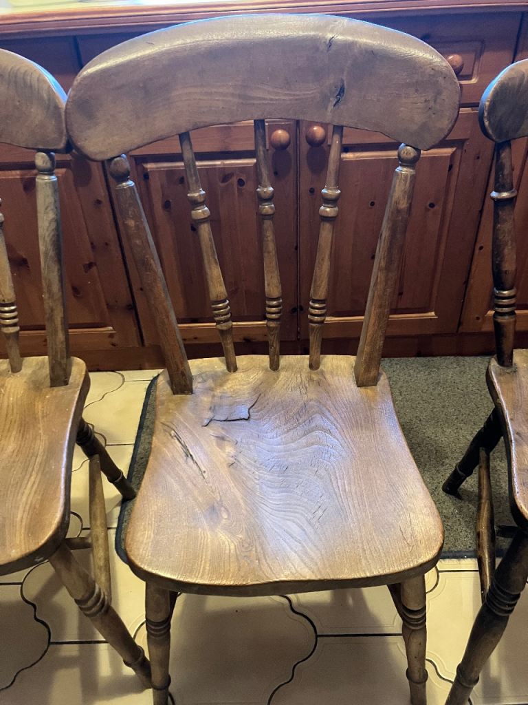 Posting for 12+ yearsFour vintage Victorian rustic elm fruitwood chairs
