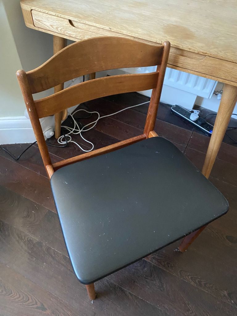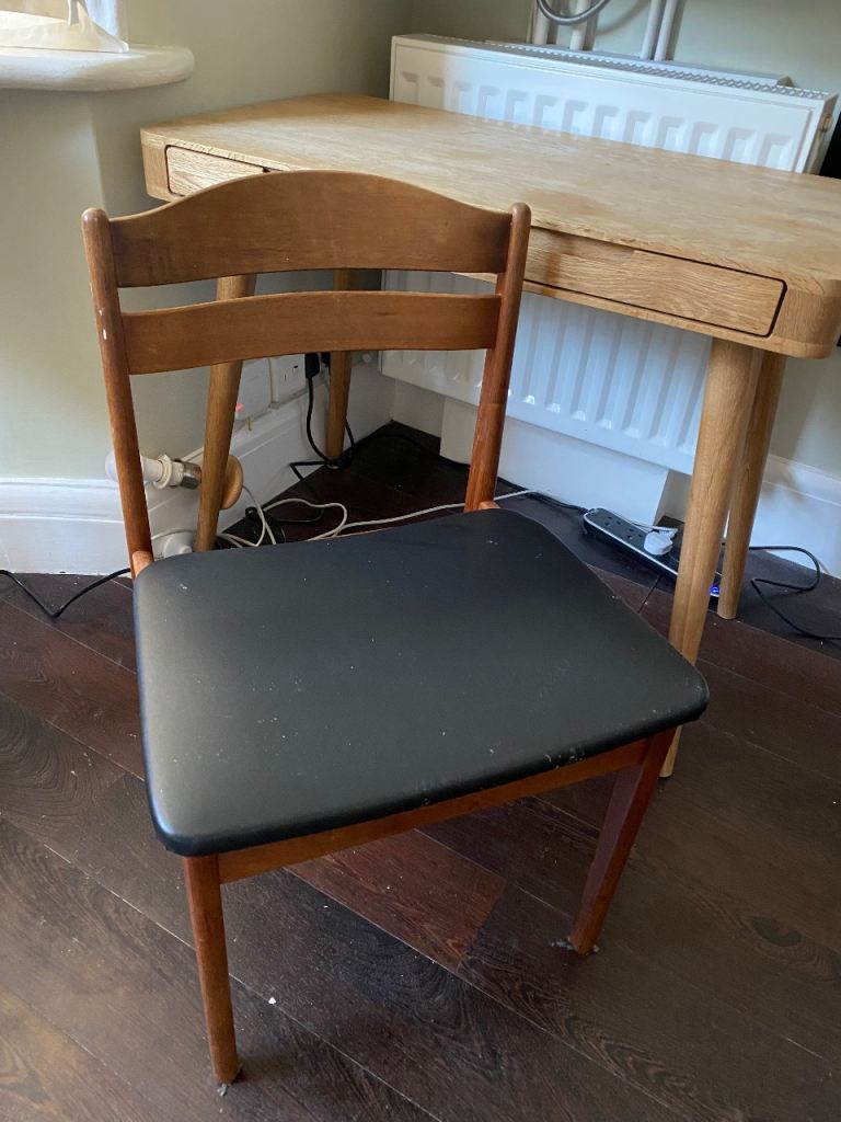 G plan black leather and dark wood chair, good condition (please see images) also selling a desk that could be used with it! Any questions feel free to ask :)