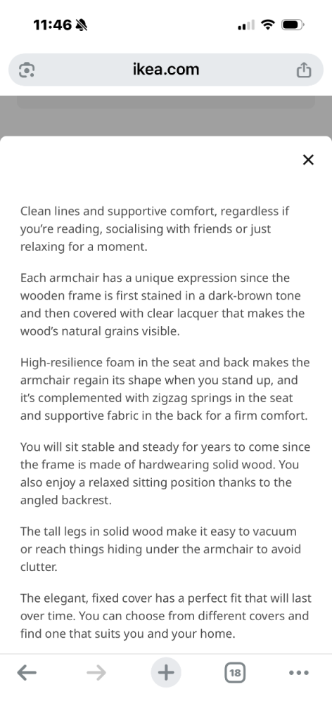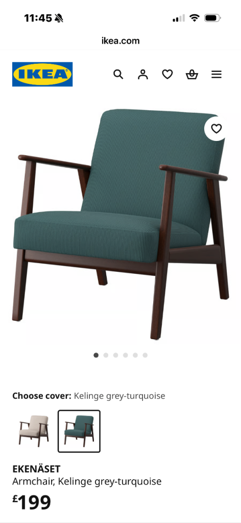 Brand new Ikea chair. EKENÄSET armchair adds a stylish retro vibe to the room that’s inspired by 1950s Scandinavian design. The classic look, sturdy and robust. Listed as grey-turquoise. Bought by my mum, but she changed her mind. Sat in once! £200 new