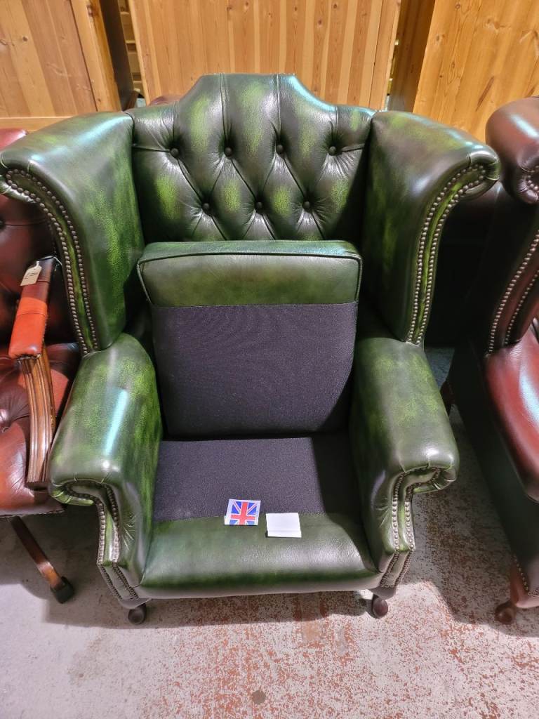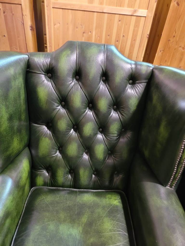 Green Leather Chesterfield Armchair - Good Condition