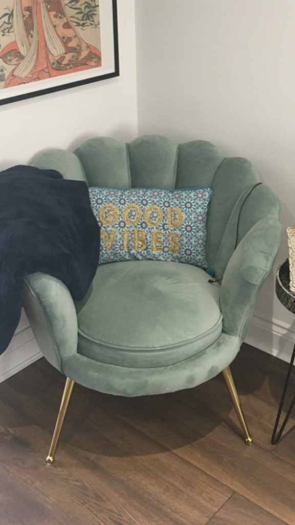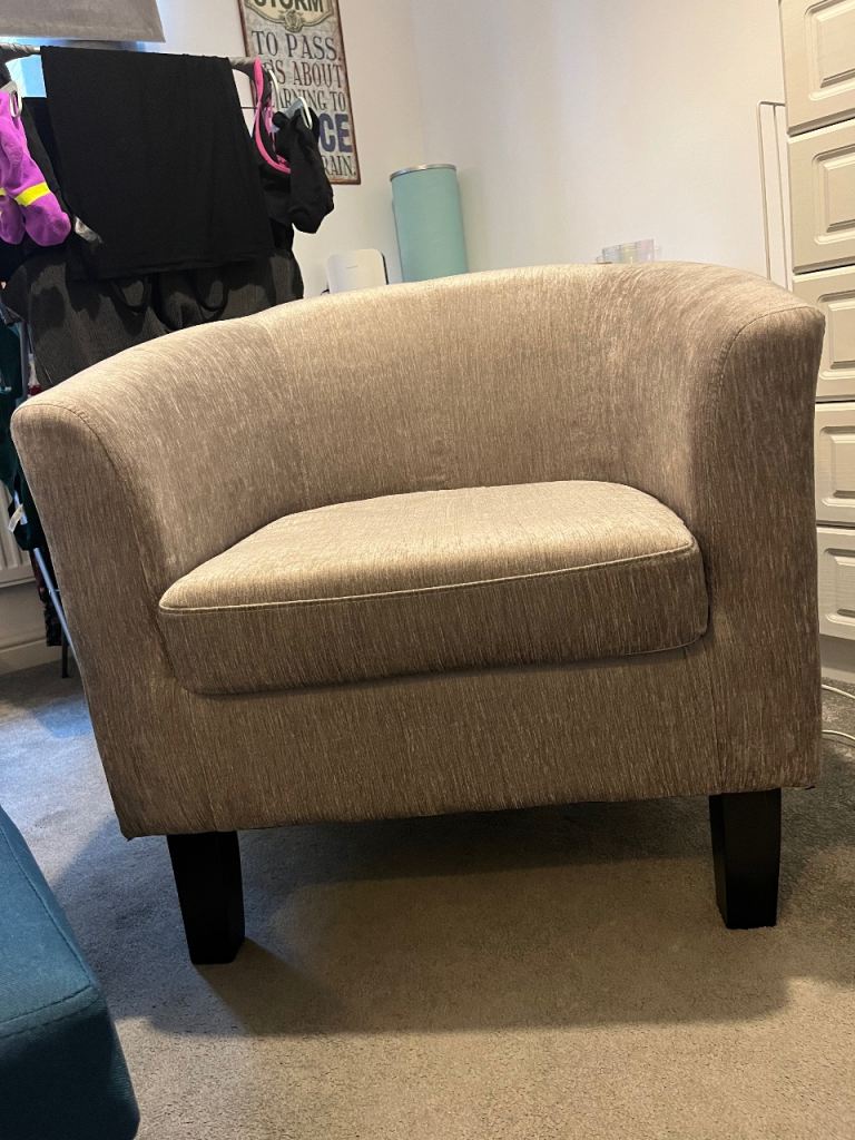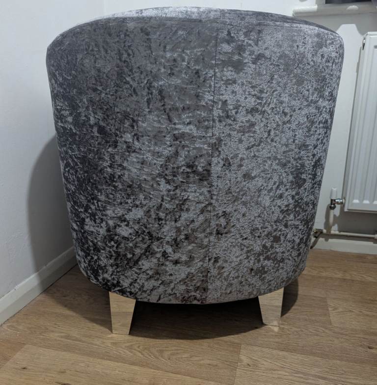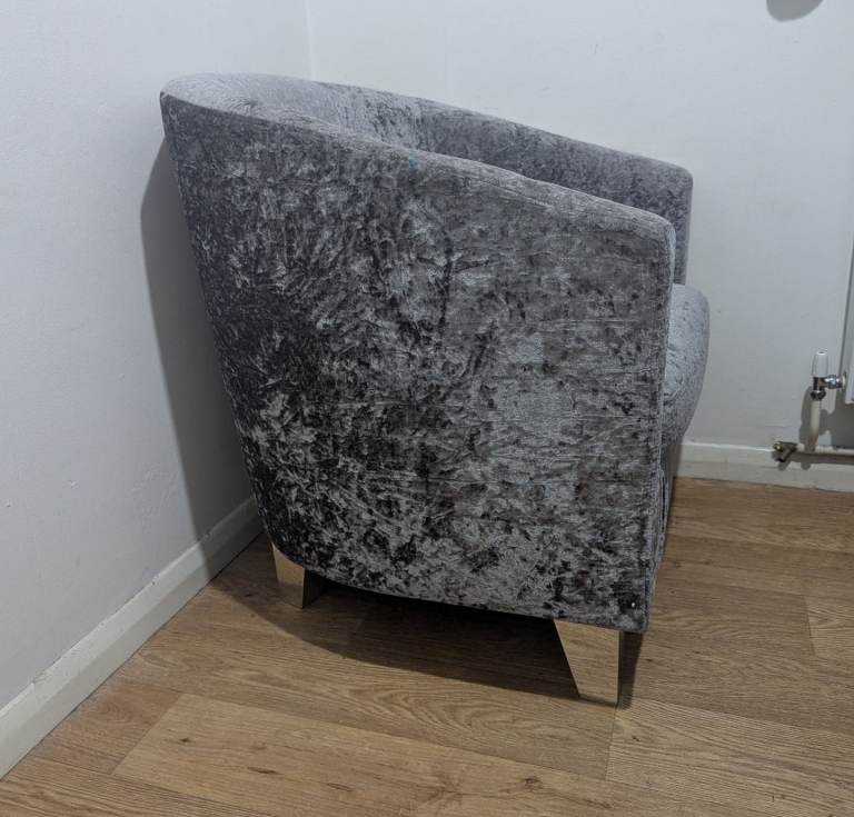 Posting for 3+ monthsGrey silver Velvet tub chair with mirrored feet