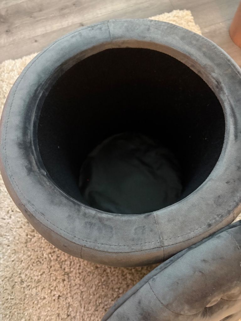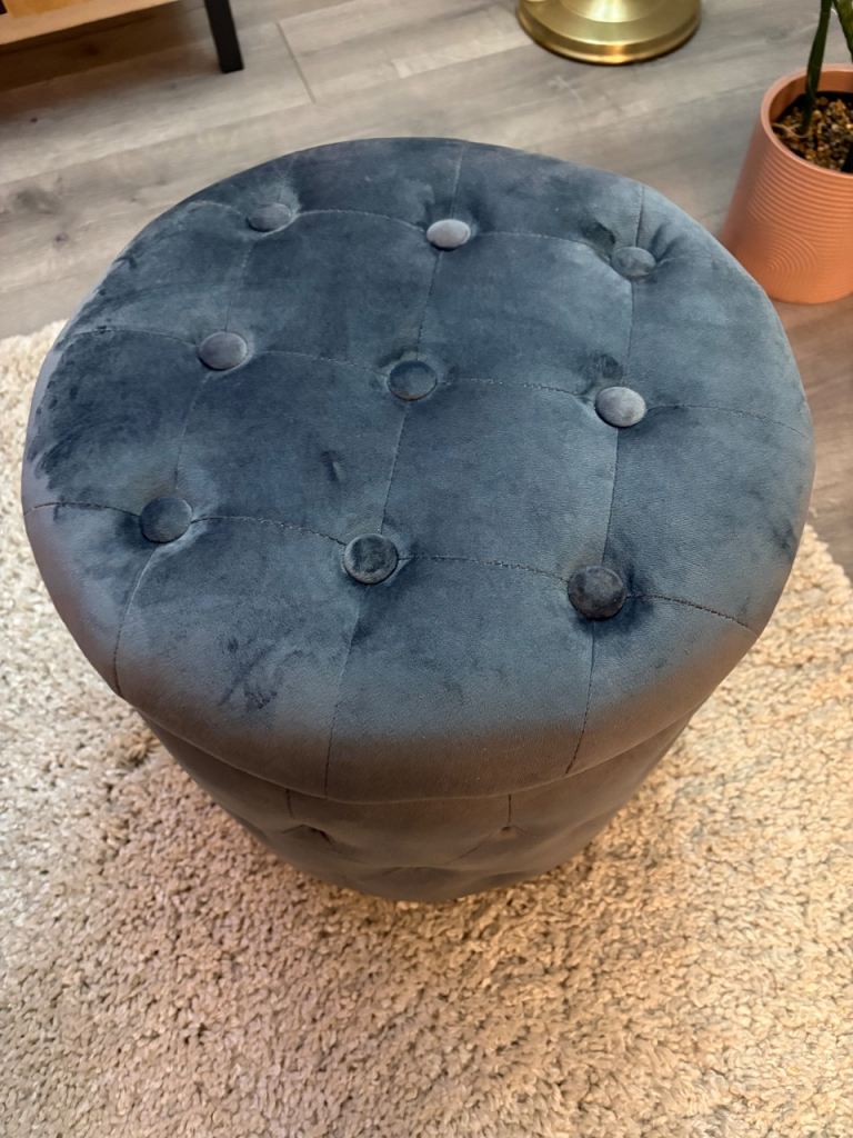 Grey Velvet Round footstool Storage stool VGC