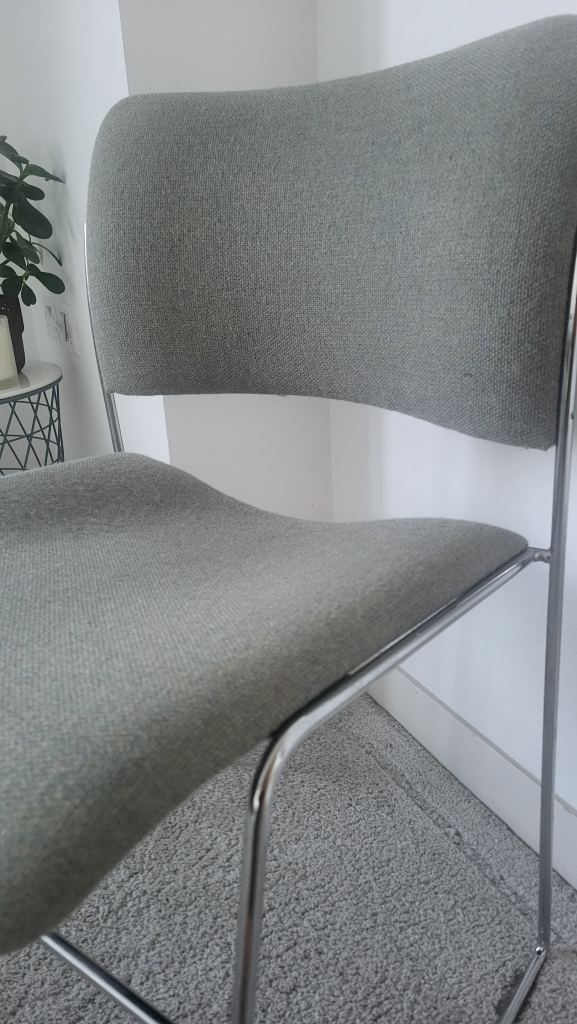 Posting for 4+ yearsHOWE 40/4 sage green stacking chair designed by David Rowland.