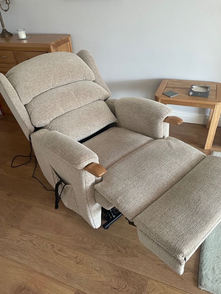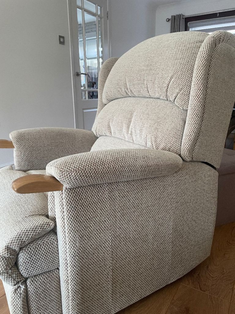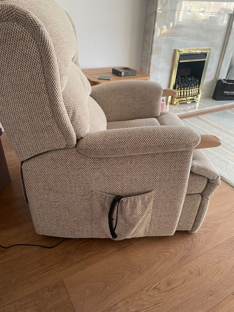 Hardly used and in excellent condition. rrp £2395. Lovely nutural beige chenille fabric. Easy to use with only 3 button use.