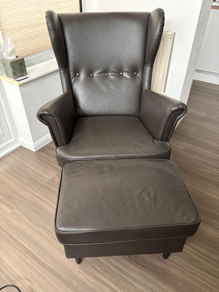 Ikea Strandmon chairs & footstools in brown. Excellent condition
