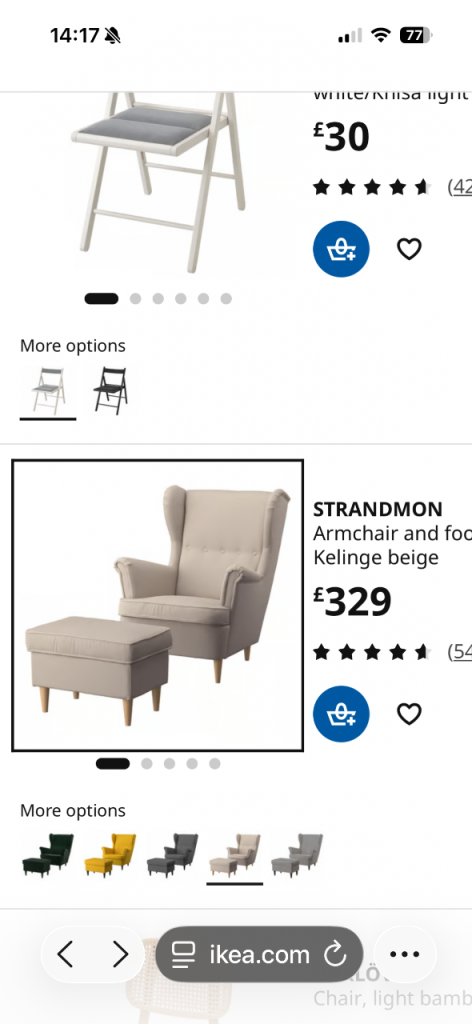 Ikea Strandmon Chairs and foot stool - qty 2
