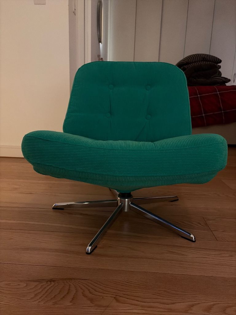 Gorgeous swivel chair in a vibrant green colourway. Selling because we need to make a bit of space in our living room.