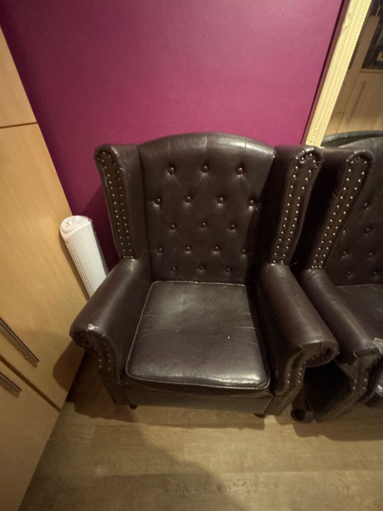 Posting for under a monthLarge, oak stained, wood and wicker chair