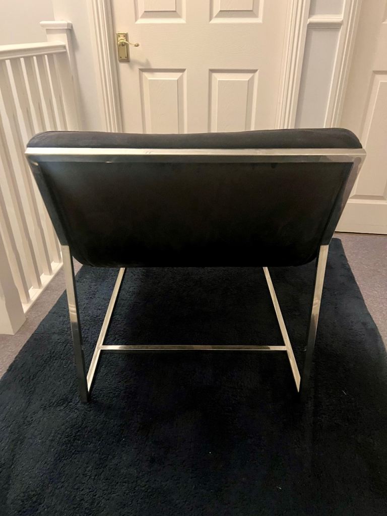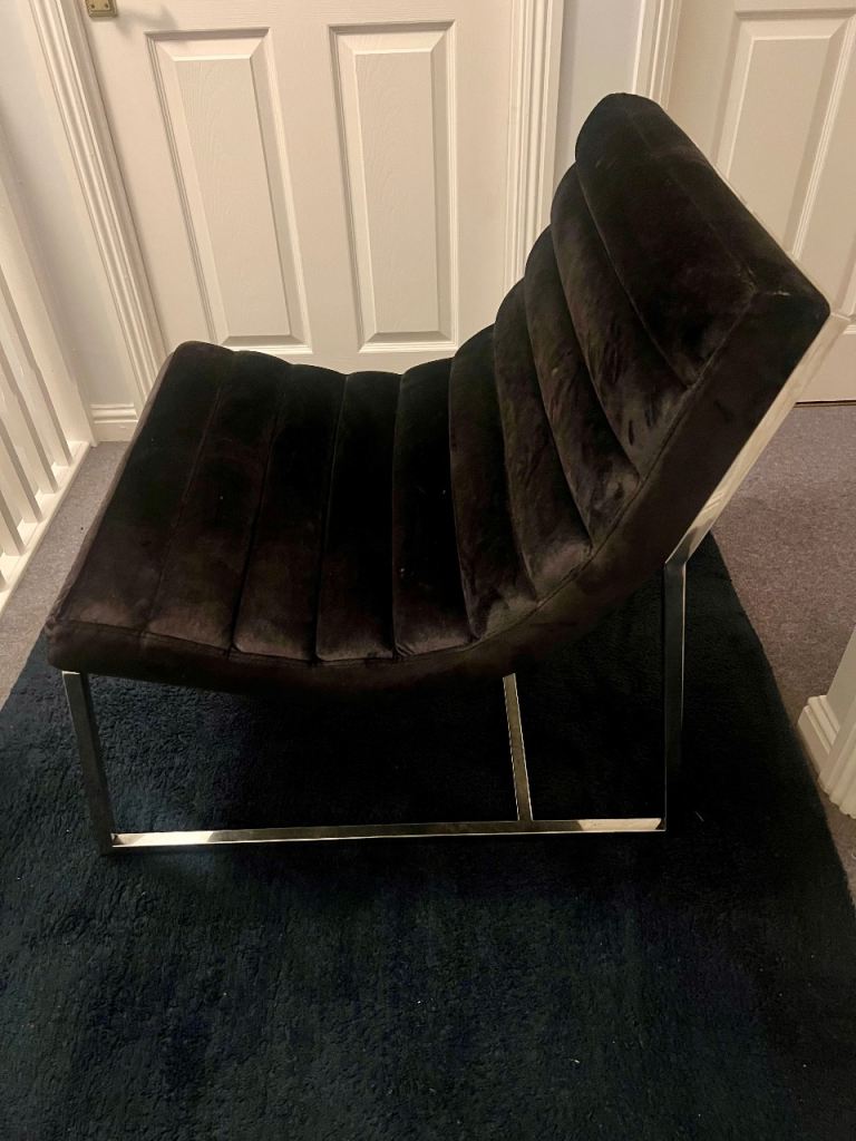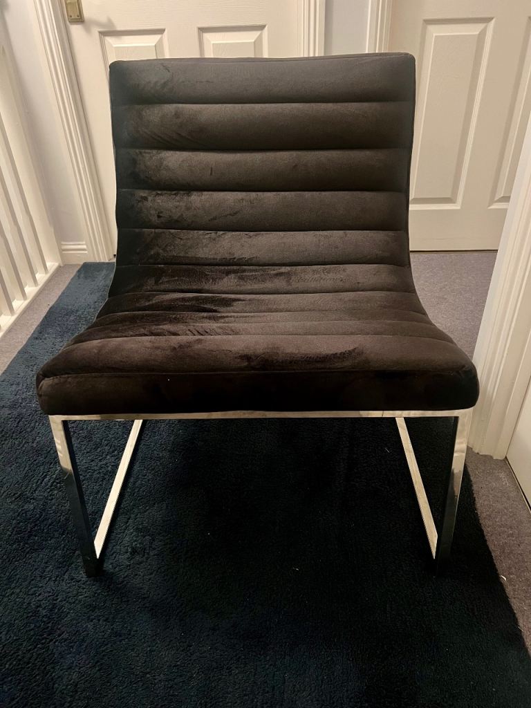 Posting for 11+ yearsModern Velvet Lounge Chair – Chrome Sled Base – Noble House - Like New