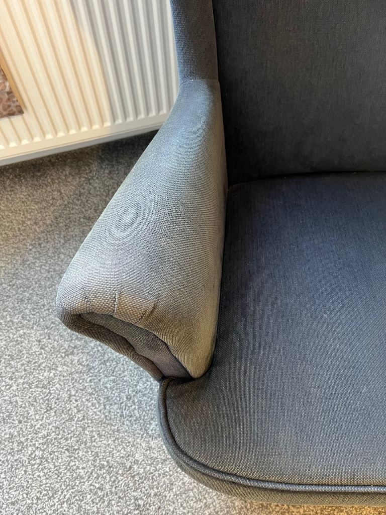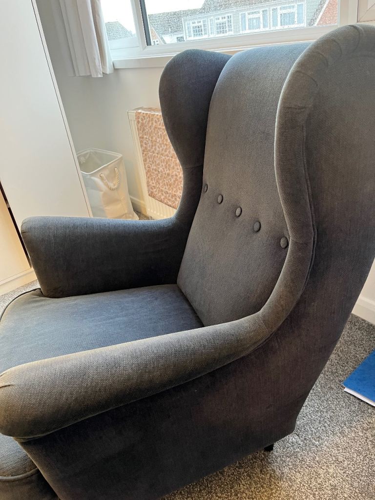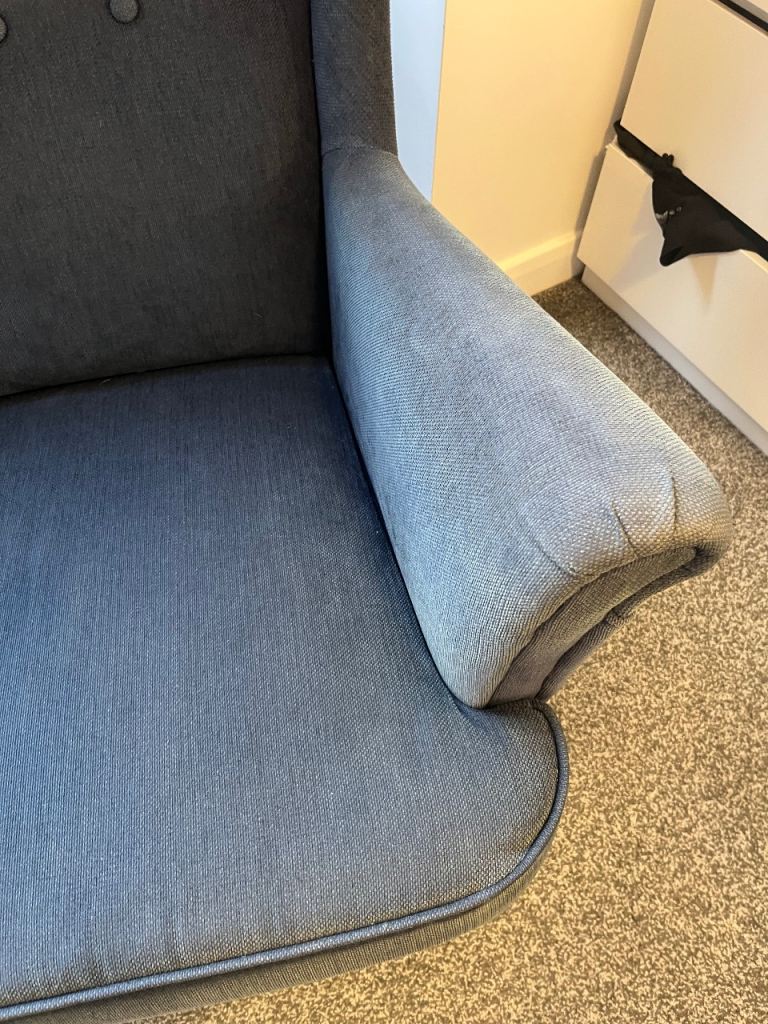 Navy ikea strandmon chair is in good sturdy condition, no rips, or holes. The chair was near a window and so the fabric has faded in places, please see pictures. Collection only from Springfield in Chelmsford Essex.