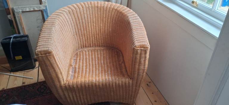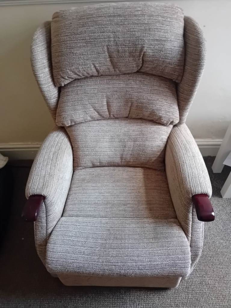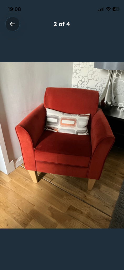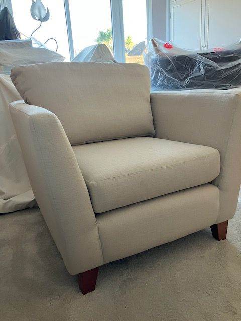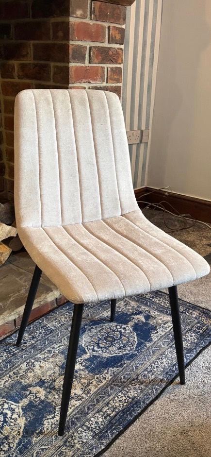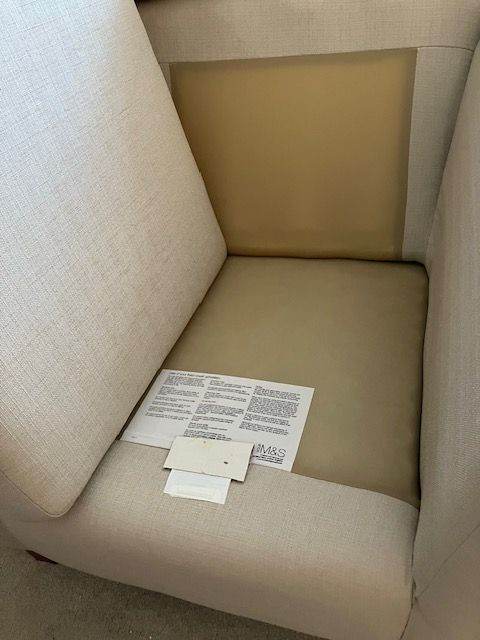 Occasional chair, light neutral coloured linen fabric with dark wooden feet. Perfect condition as never been used, could sit in either a living area or bedroom. Unwanted due to house move. Length 83cm, width 79 cm and height 60cm. Will need to be collected.