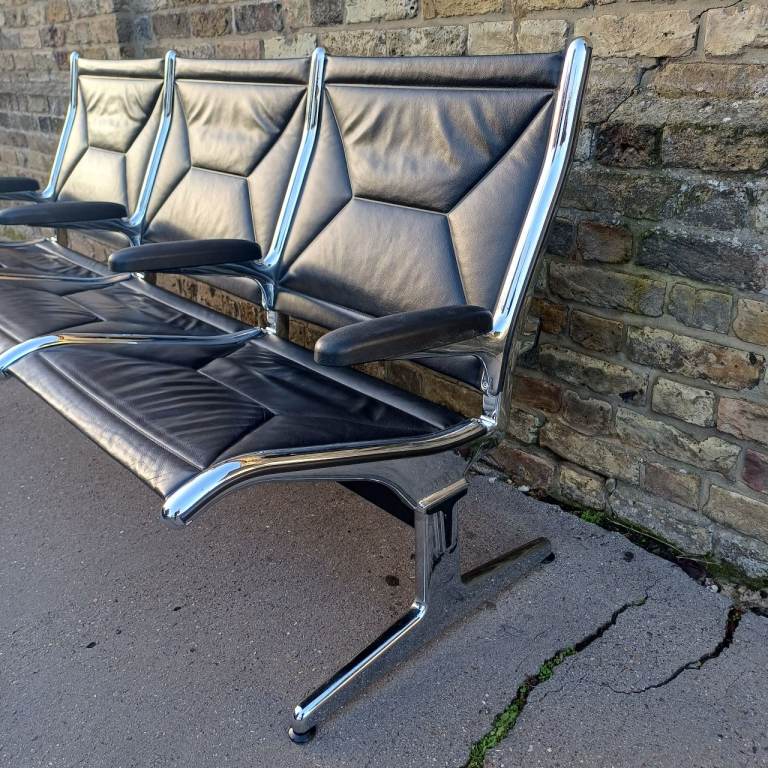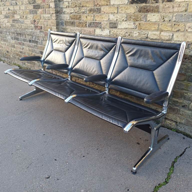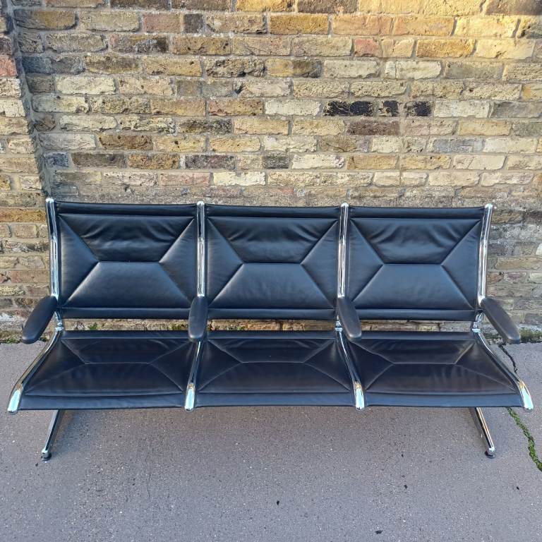 Black Leather Tandem Sling 3-Seater Airport Bench by Charles & Ray Eames for Herman Miller ,used but in very good condition for age .