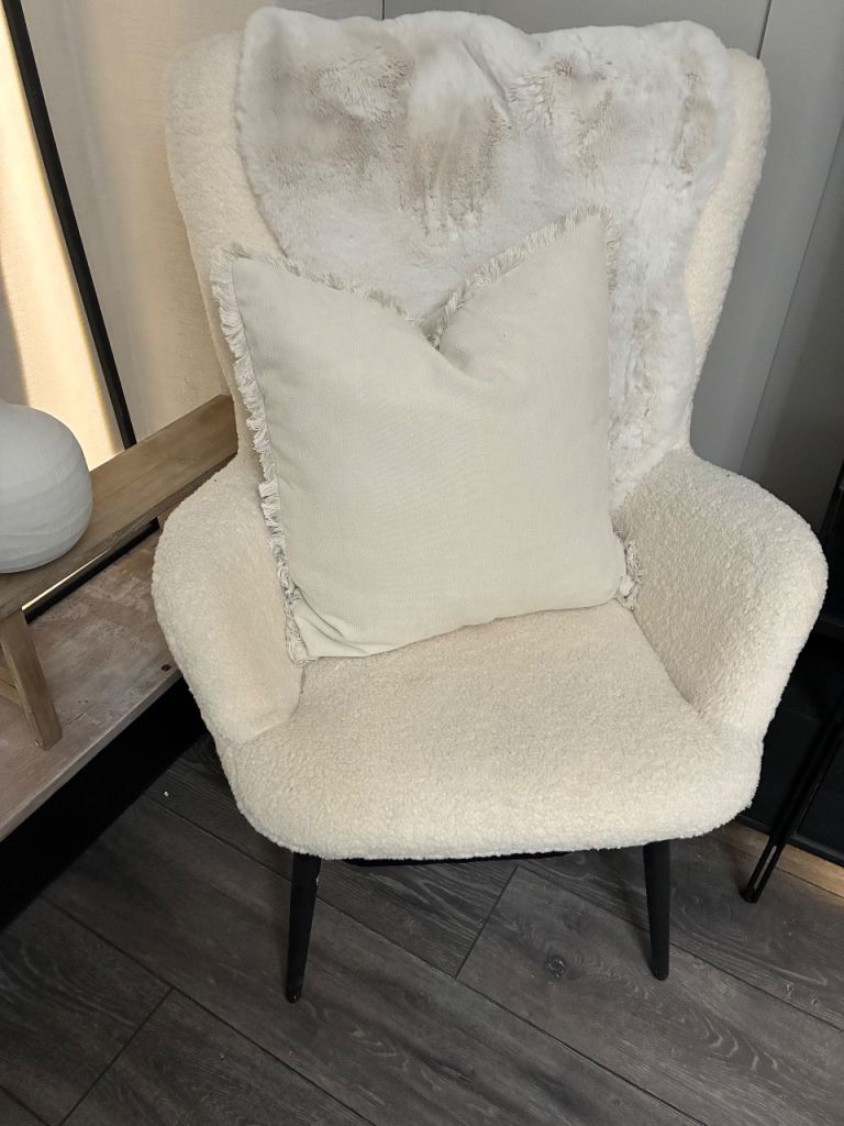 Brand New Cream Boucle winged back chairs not used. Perfect condition . £169 each as new. Sold as Pair £100