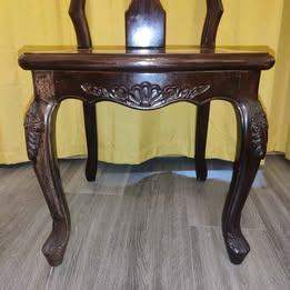 A pair of Chinese hall chairs. These have very fine detailing in the carvings and they are firm and sturdy.