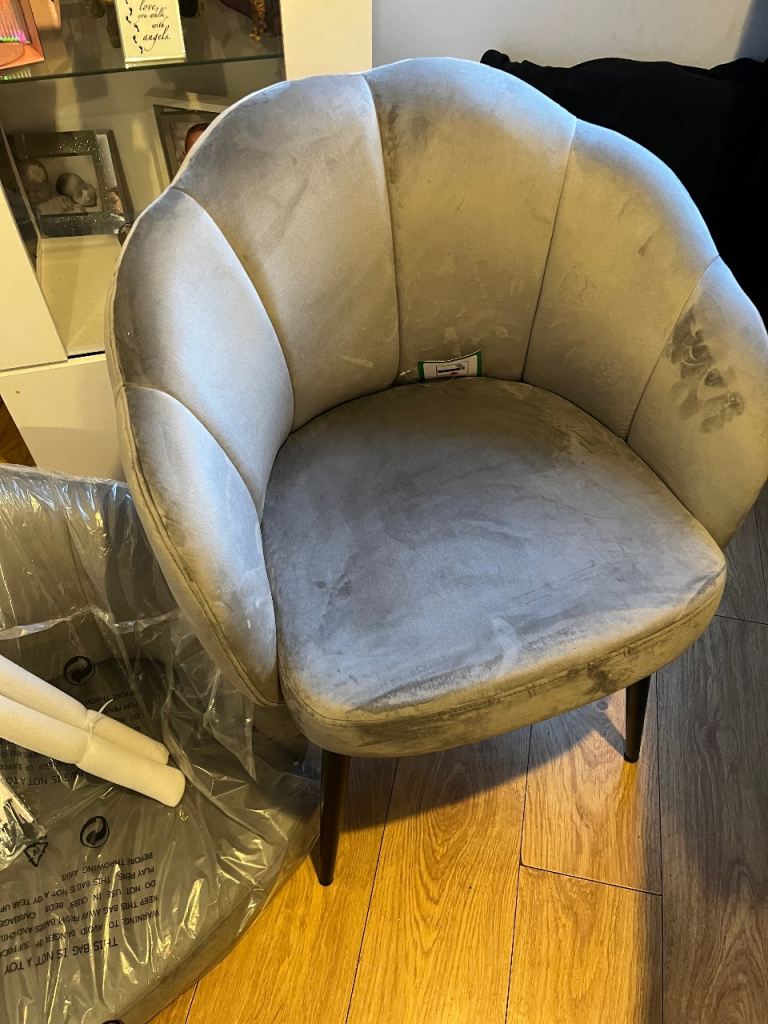Stunning grey velvet scalloped edged chairs 75 each or 140 for the pair