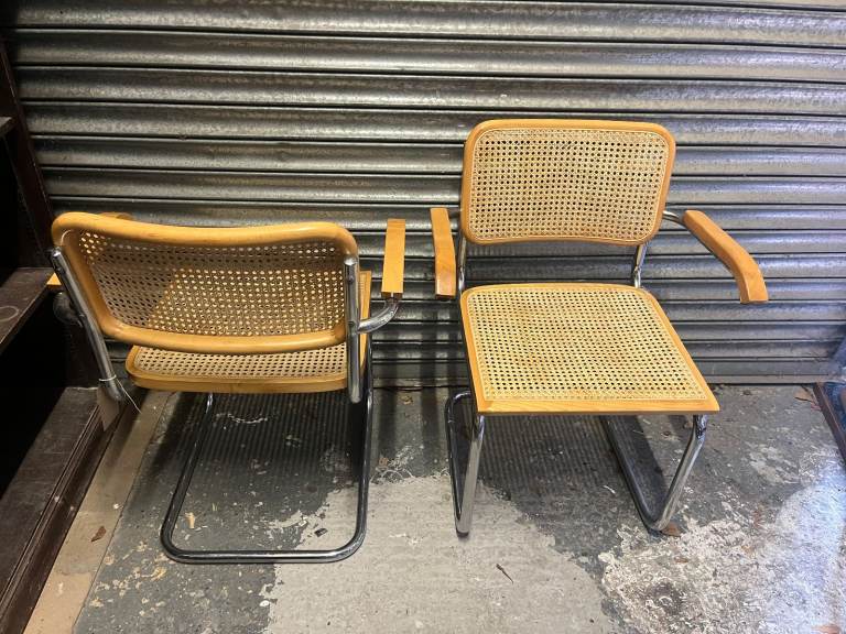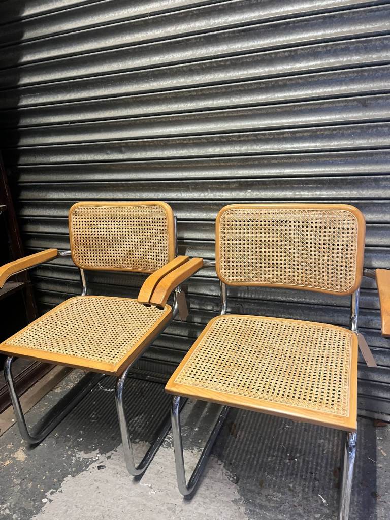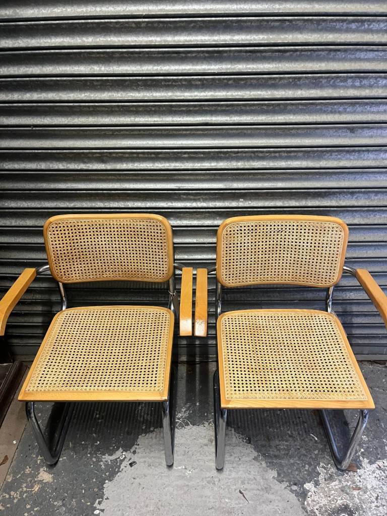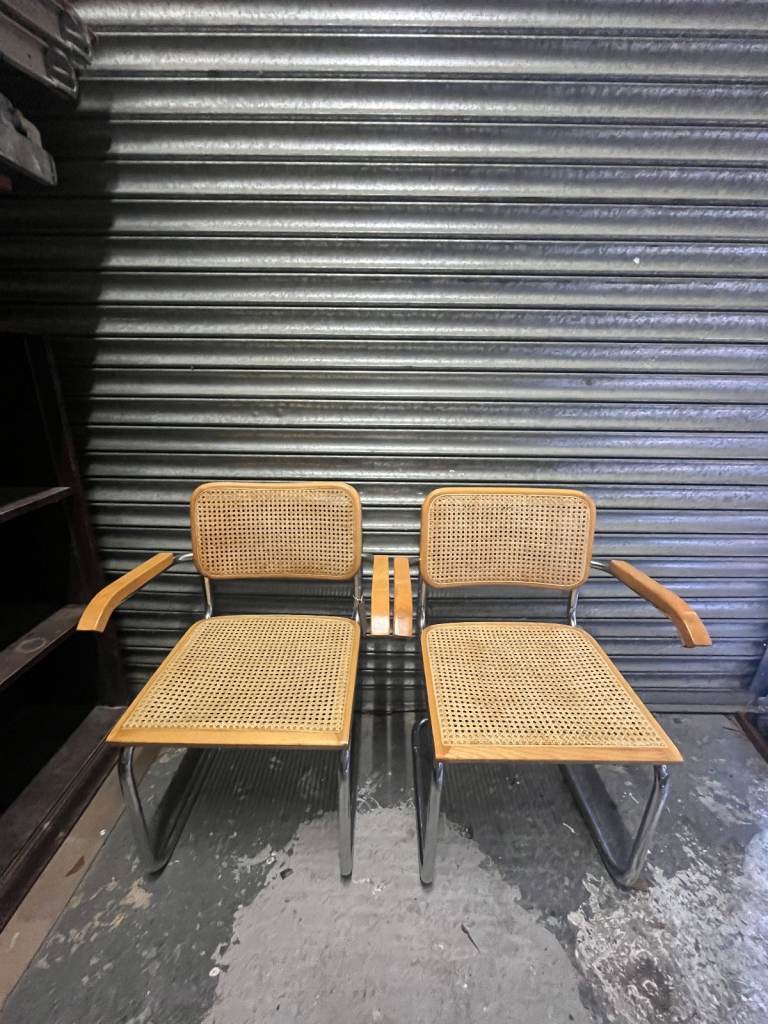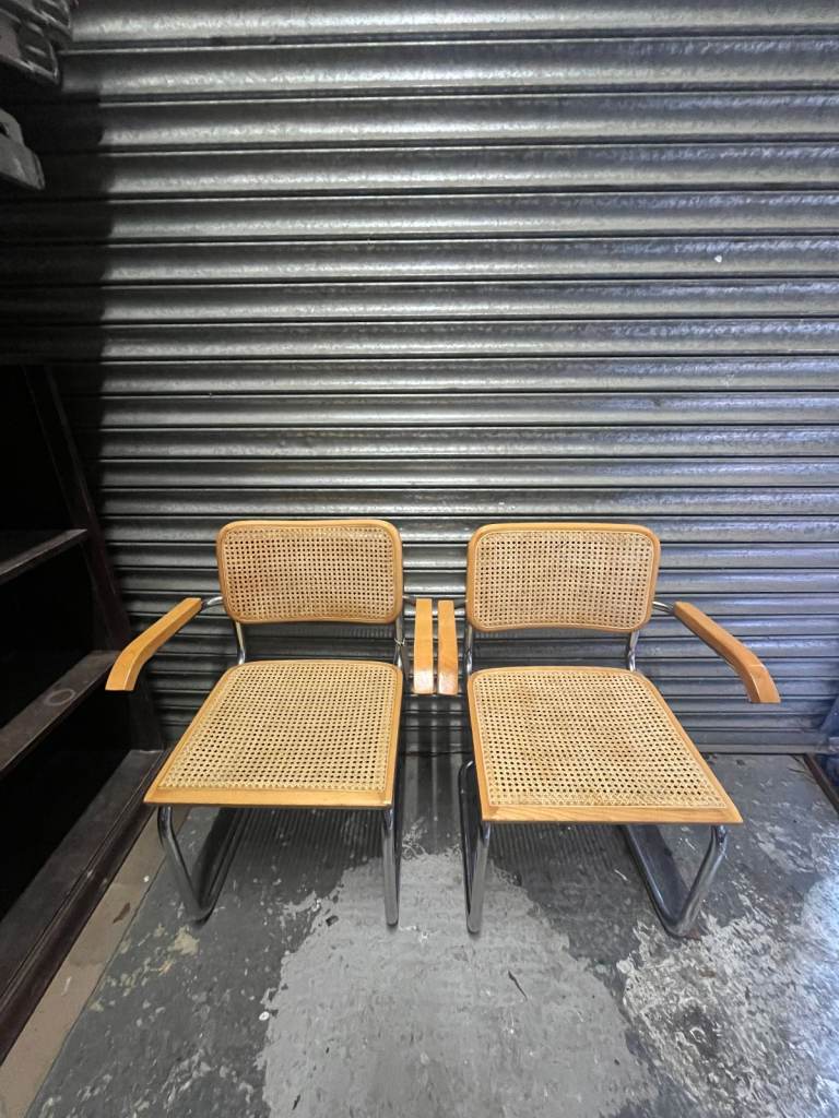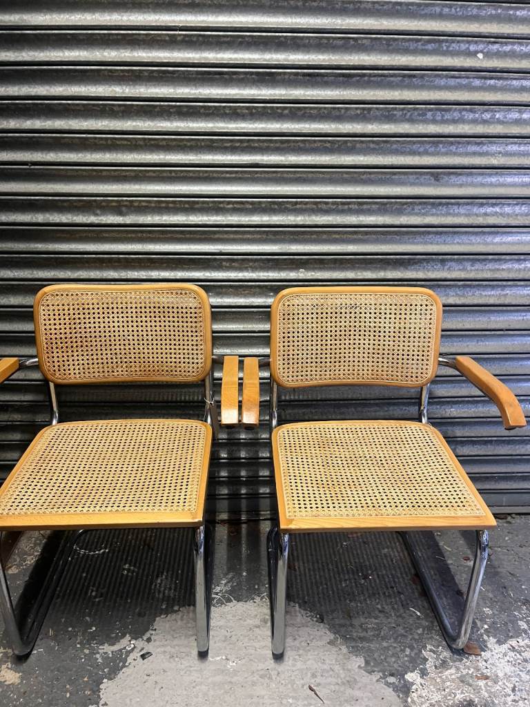 Posting for 7+ monthsPair of vintage Bauhaus Marcel Breuer Cesca Chairs with armrest beige wood