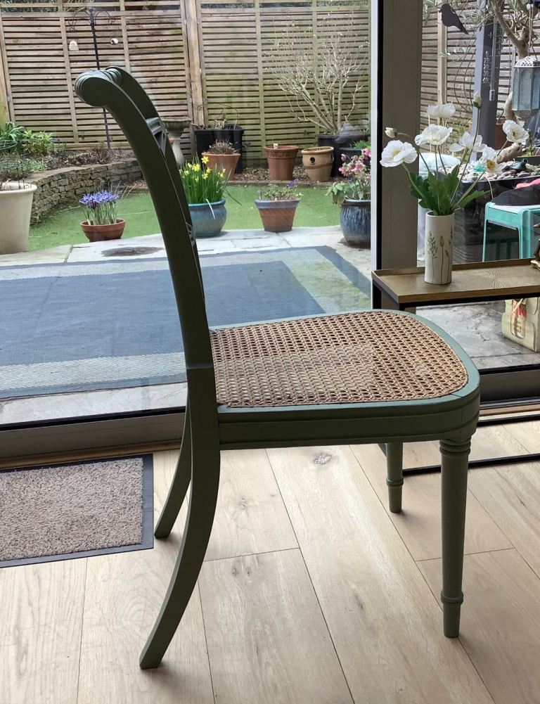 Carefully painted and a professional re rattened seat.