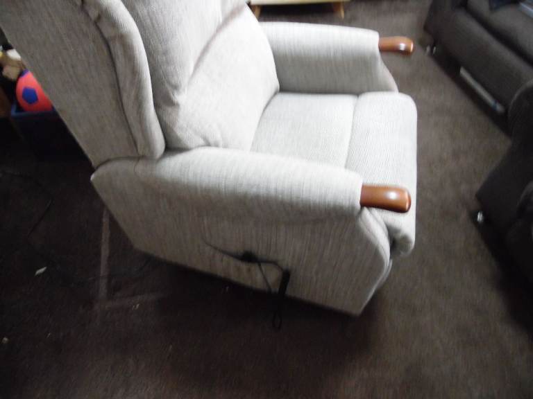 this is a mains electric and battery recliner chair it can lift you in and out of the chair goes up and down can be put in to a bed position can also put your feet up and the back rest moves into different positions as well