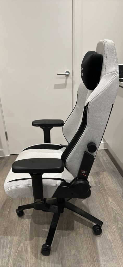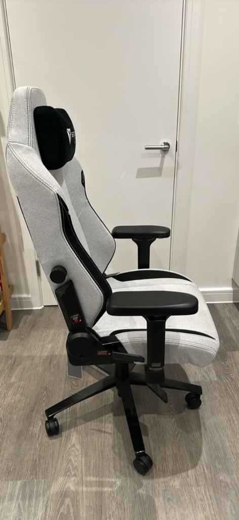 Up for grabs is my Secretlab Titan gaming chair in light grey fabric with black accents.
