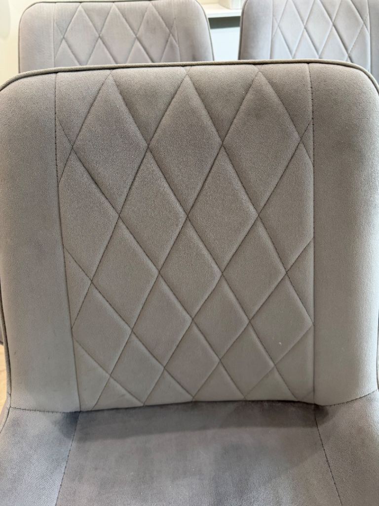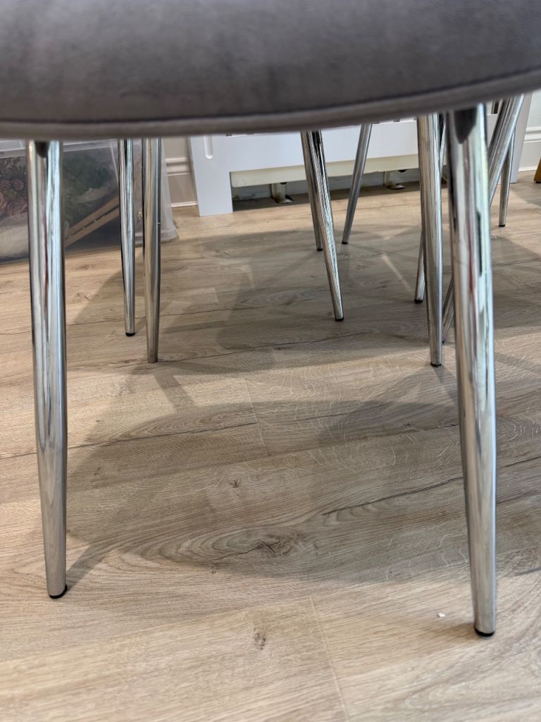 Posting for under a monthSet of 4 Grey Velvet Dining Chairs with Chrome Legs