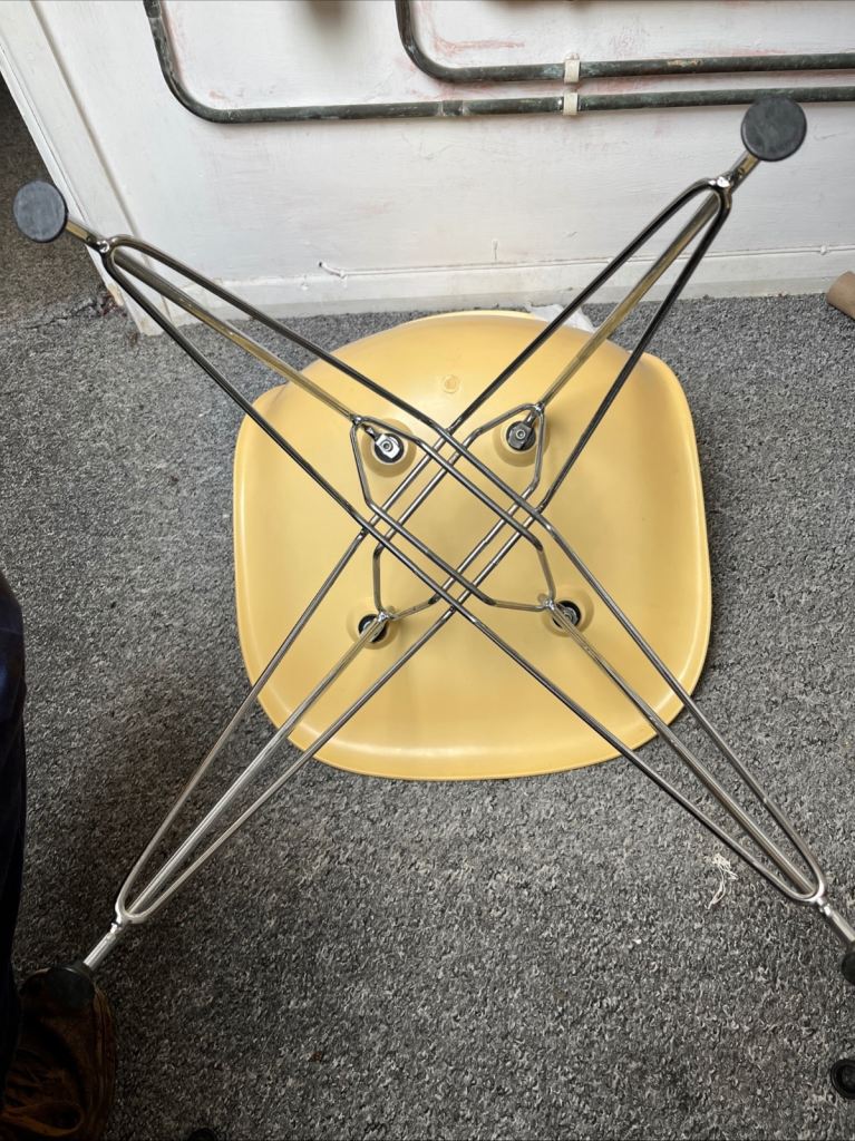 The Vitra Eames DSR Chair (Dining Height Side Chair Rod Base) is an iconic piece of 20th-century design, originally created by Charles and Ray Eames in 1950 and now manufactured by Vitra. Known for its "Eiffel Tower" wire base and ergonomic, molded seat shell, the DSR has become a staple of modern dining and commercial spaces.Â
