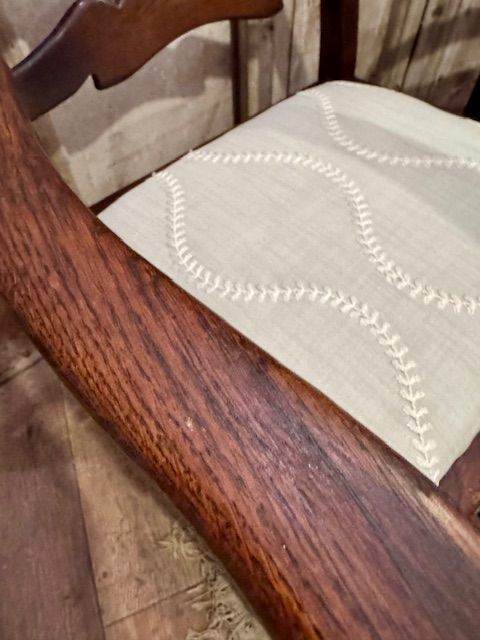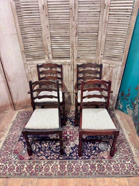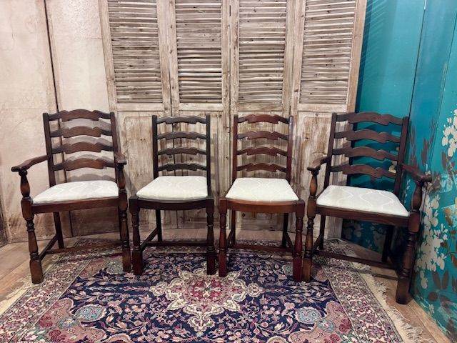 Lovely set of four vintage oak Jacobean ladder-back dining chairs (two arm-chairs.