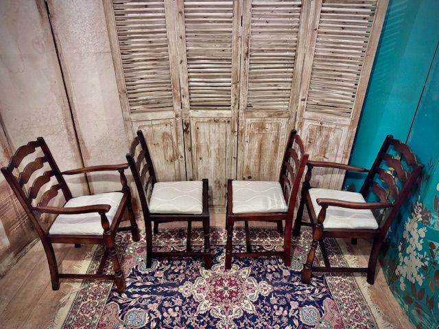Set of Four Vintage Jacobean ladder-back Dining Chairs – local delivery