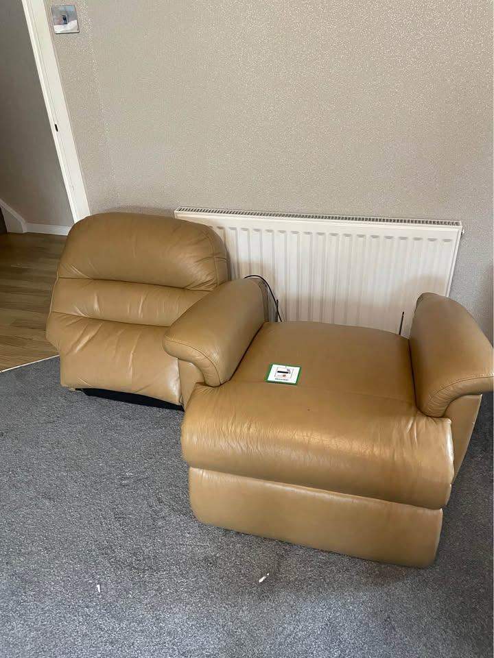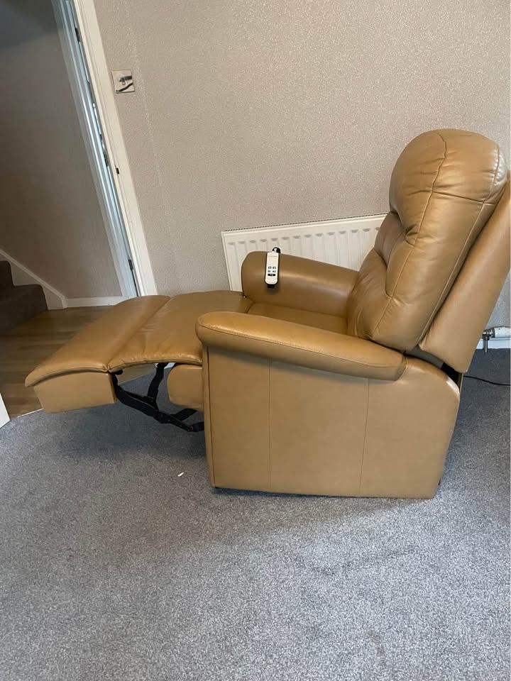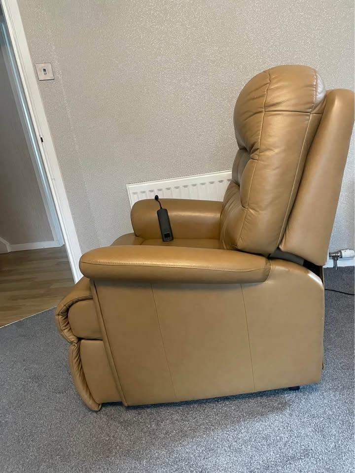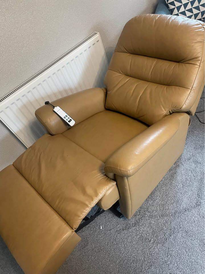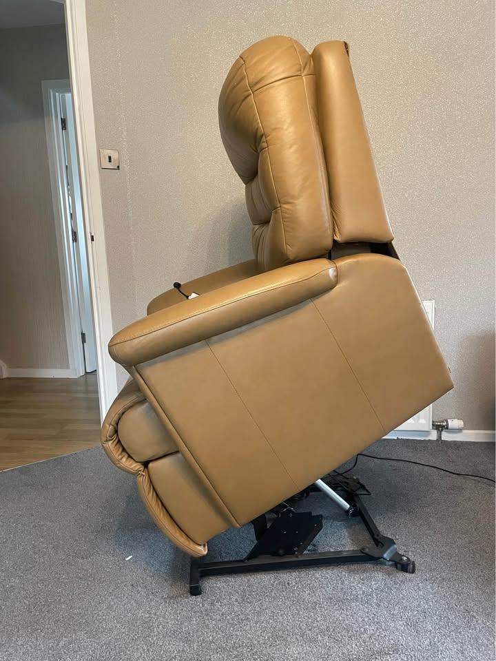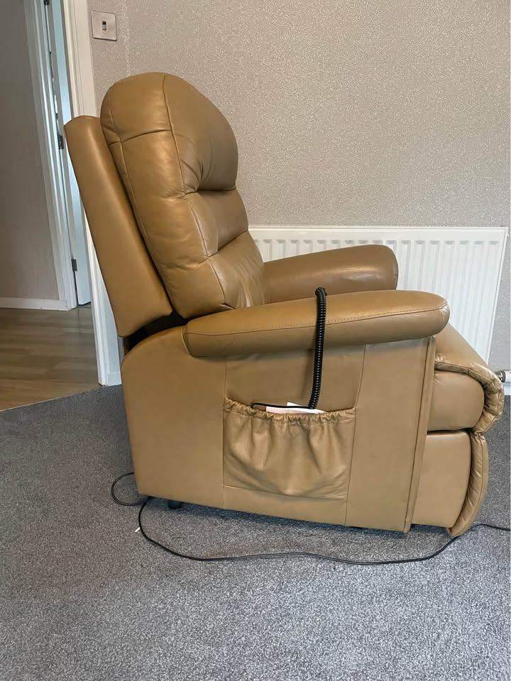 Sherbourne dual motor leather Riser recliner assist chair , splits into two parts for transportation, a few marks on it , cost over £2000 when new , selling for £350
