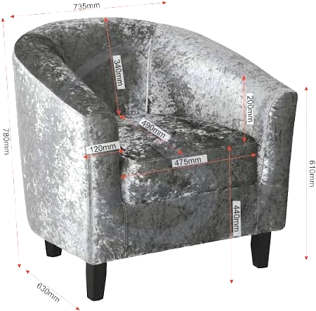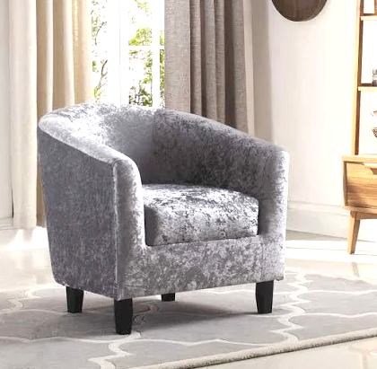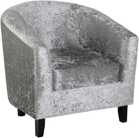 Silver Crushed Velvet Tub Chair Armchair Club Chair for Dining Living Office Room & Cafe Light Grey