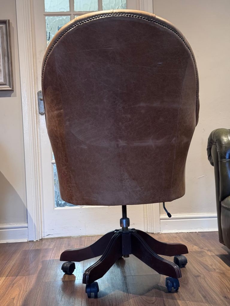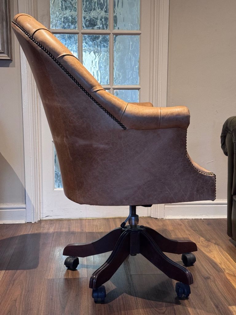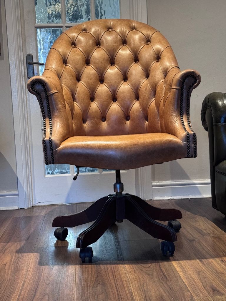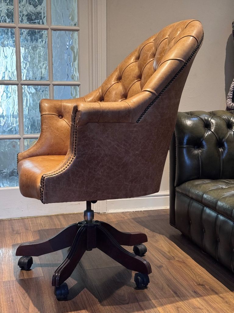 Lovely tan leather office chair with classic Chesterfield button detailing.
