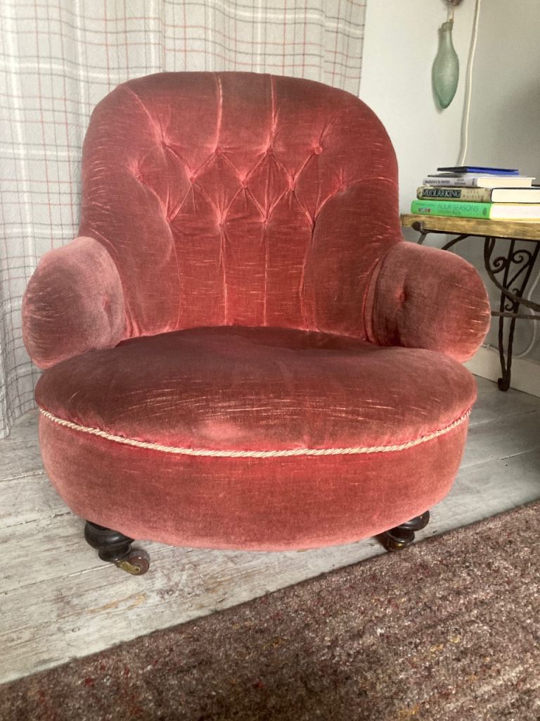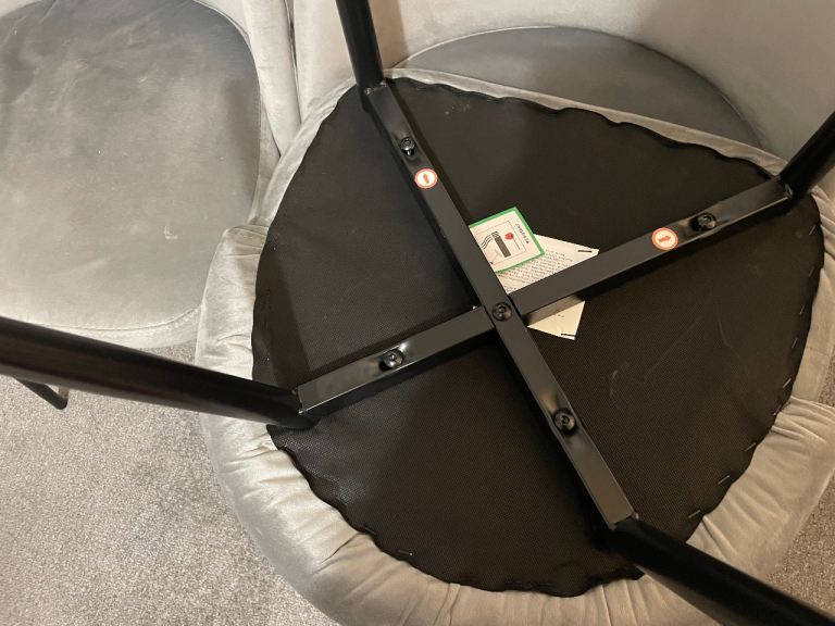 Posting for 4+ yearsThree Grey Velvet Dining Chairs with Black Legs – Good Condition