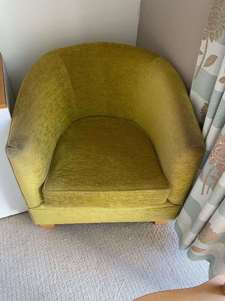 Tub chair for sale. The structure of this chair is in very good condition. The material needs renewed. Collection only £30