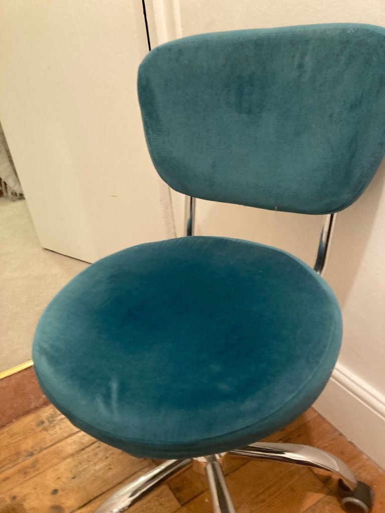 Velvet-style seat. Adjustable height. Good condition. Full price was £59.99 (as shown). Approx 36 inch at full height x 17 inch width x 21 inch depth.