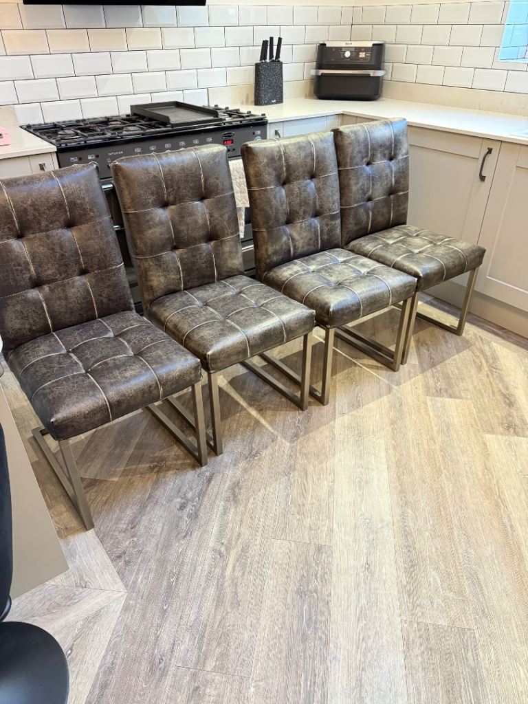 These are two adult size four legged wicker chairs.