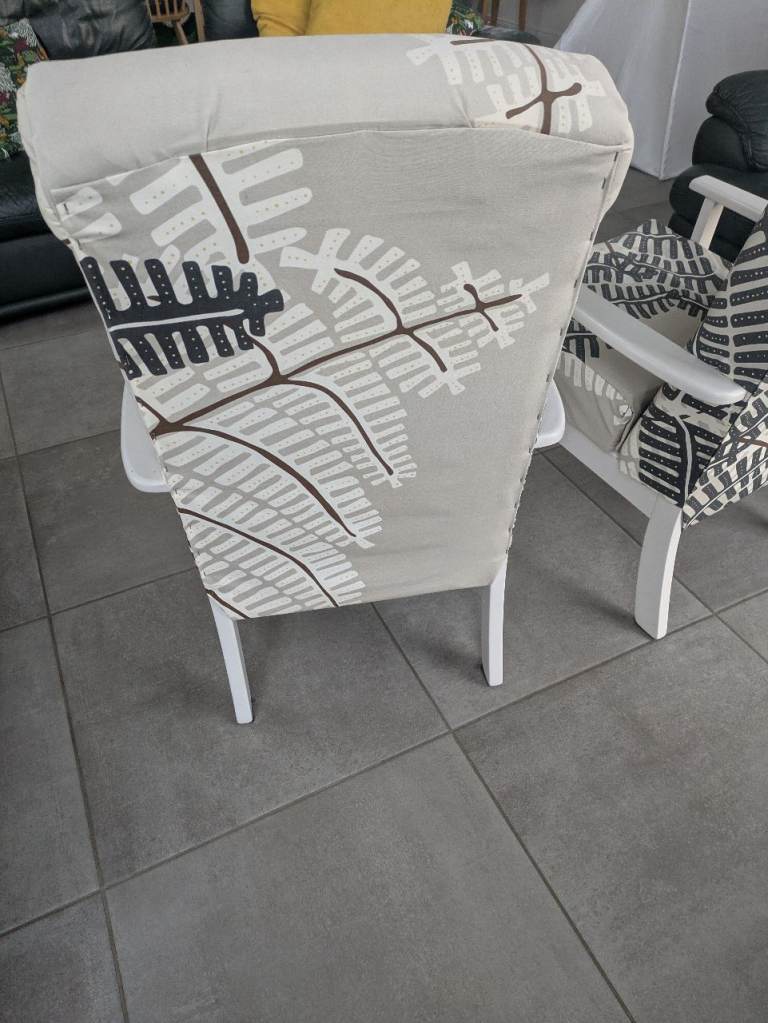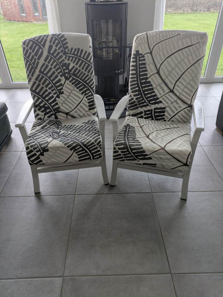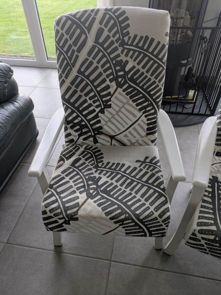 Two previously upcycled armchairs. Ready for a new life. £75 for the pair.