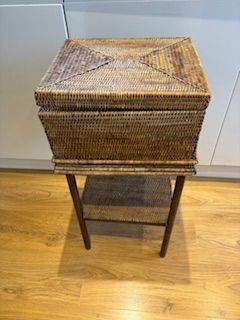 This vintage telephone table and seat with a draw was my late Mums who owned it for at least 40 years. It is dark wood with a gold colour fabric. It shows signs of use in the wood but in good condition for its age.