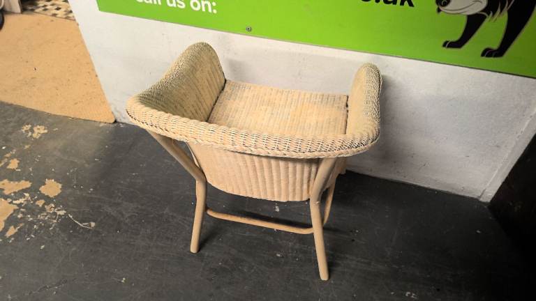 vintage lloyd loom style chair been painted cream so wants a bit of T.L.C still a good strong chair the measurements are 55cm long / depth 60cm / height 70cm / seat height 42cm / seat depth 42cm / seat length 42cm /