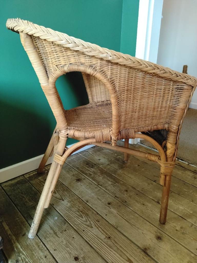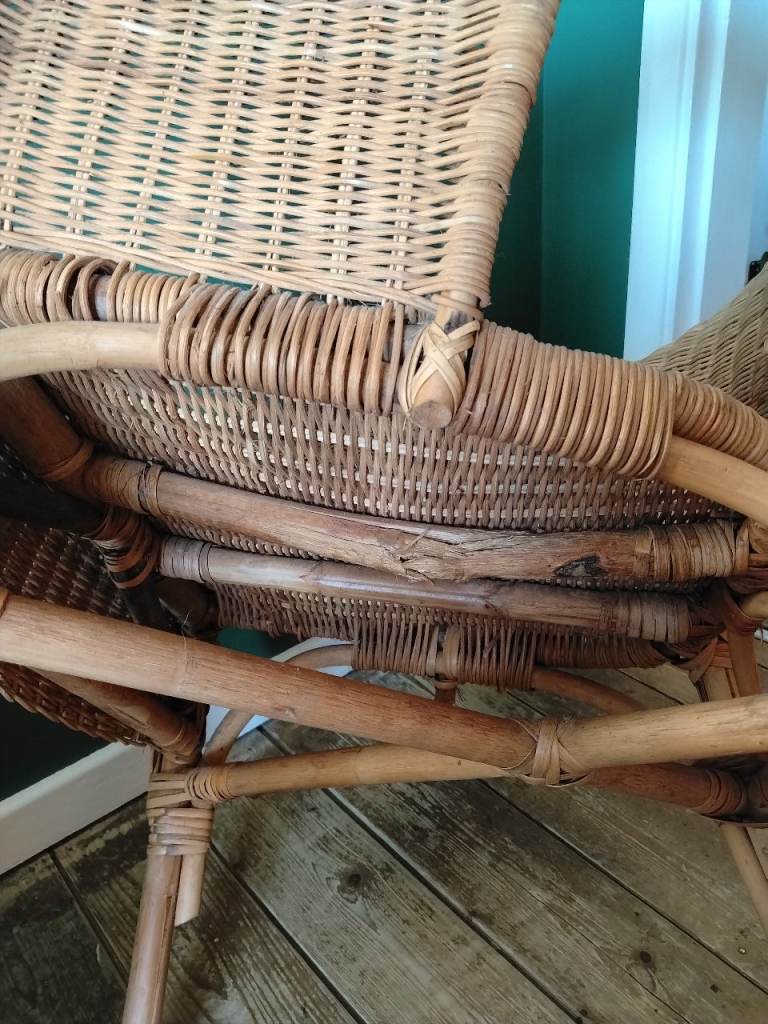 Wicker feature chair. The rod under the seat has damage as seen in picture,could be a nice up cycle project.
