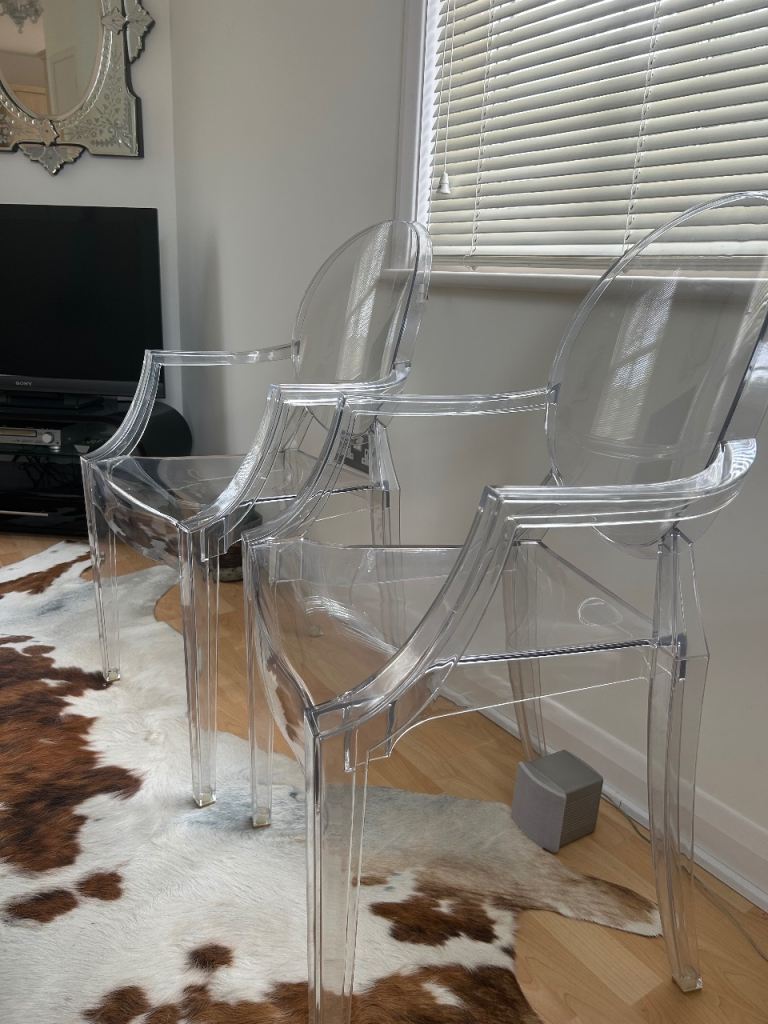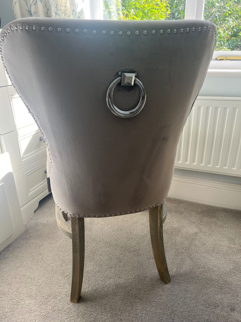 Posting for 15+ yearsWooden Armchair with Patterned Blue Cushions – Good Condition