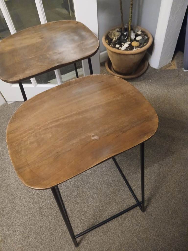 2 x Zara Home, breakfast bar stools, wooden seats with metal support