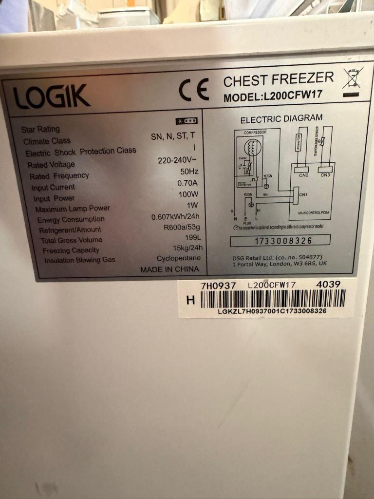 ✨ ✨ *LOGIK chest freezer 199 liters - in good condition with FREE Delivery! ✨ - *Price*:155£