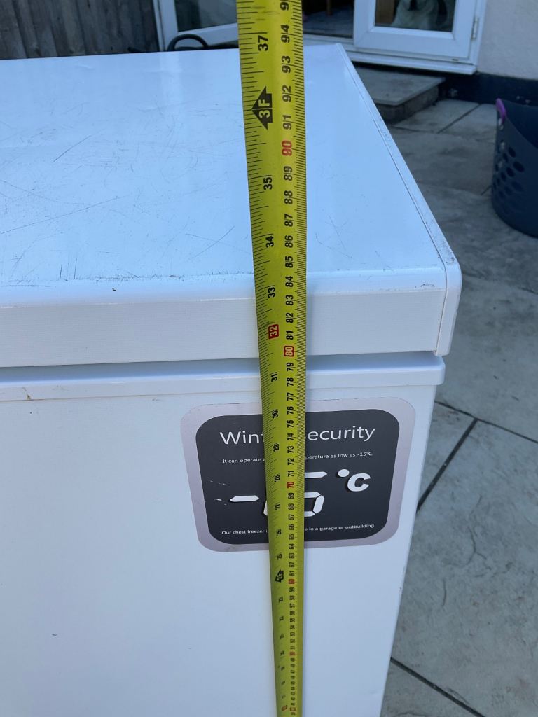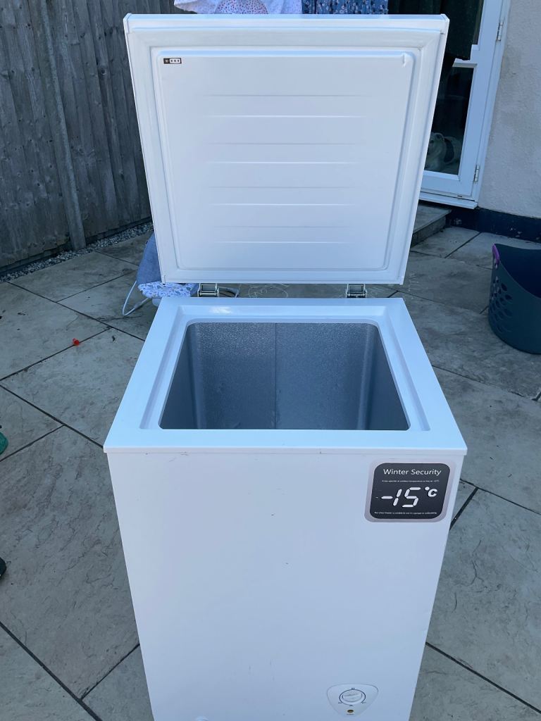 Essentials chest freezer. Used in the garage so some marks but in good working condition