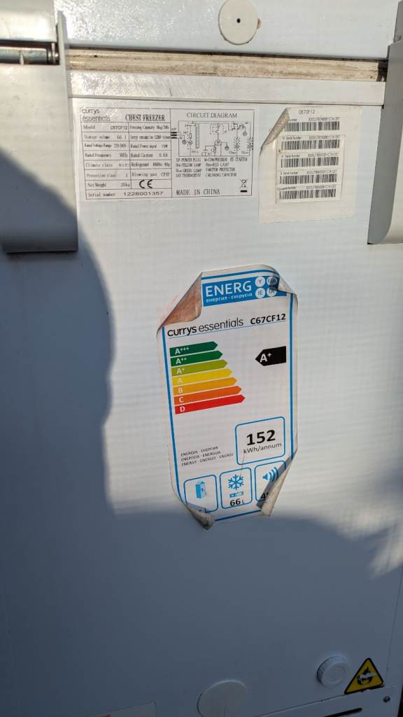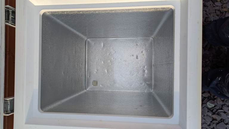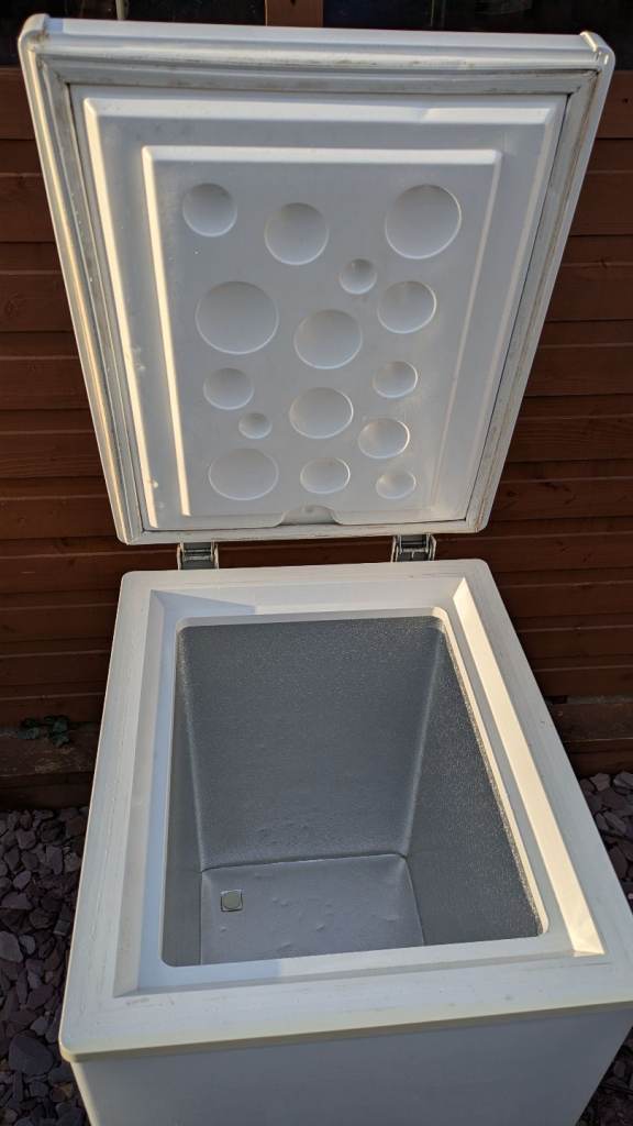 This is a used chest freezer that has been kept in the shed as a second freezer. There are a few minor marks, scuffs and indents on the outside, but it's in perfect working order.