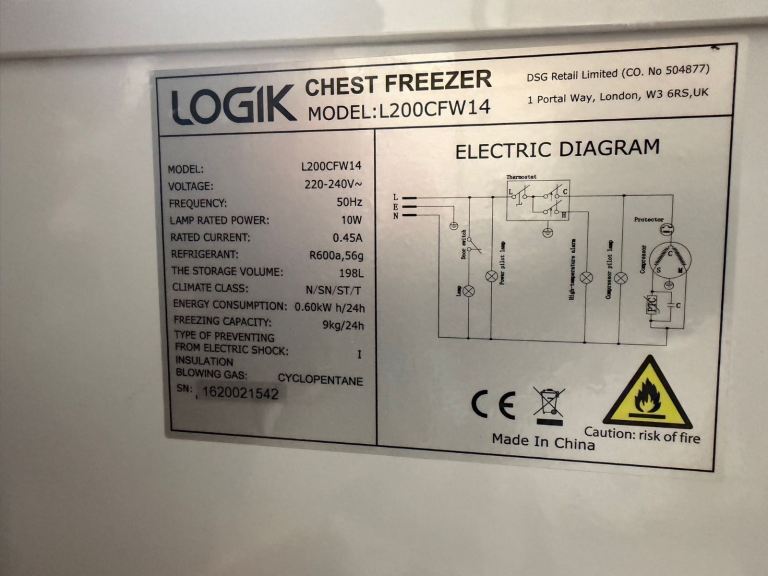 Posting for 11+ monthsLOGIK L200CFW14 Chest Freezer - White, Good Condition
