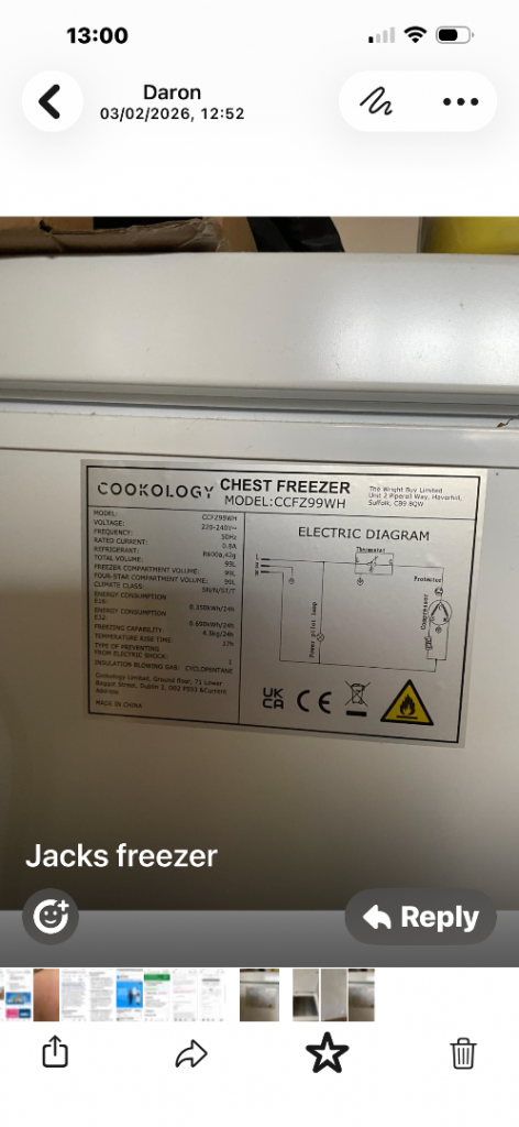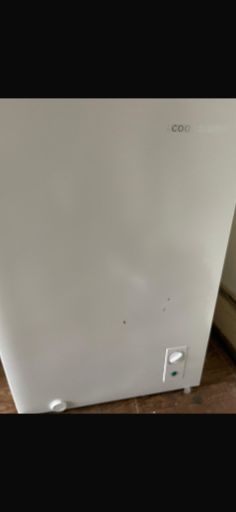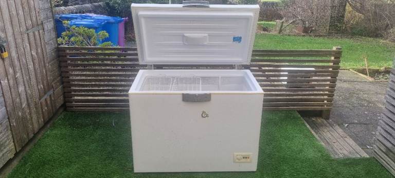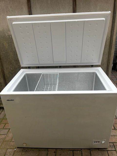 White chest freezer bought from Amazon and used for one Christmas paid £164. Small mark on front from being moved from utility to spare room for collection.