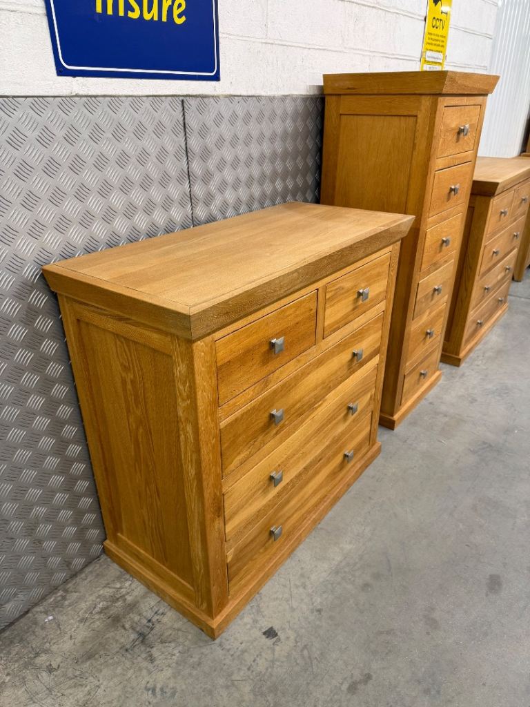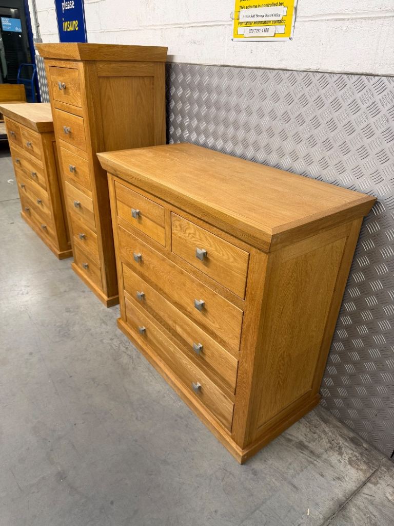 2 Cargo Oak chest of drawers and tall boy unit